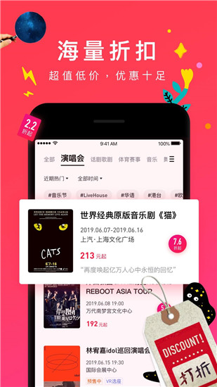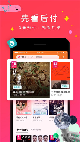 摩天轮票务app是一款可以在线抢购各类演唱会相声等演艺门票的软件,软件提供独特的无票赔偿、先看后付、免费赠票、一键转票等多种贴心服务,免除用户购票抢票的麻烦与顾虑,作为各种明星的忠实粉丝,这款软件绝对是必不可少的追星良器!摩天轮票务app现已覆盖国内几乎所有形式的演艺盛会,如果您国庆放假在家不知道看谁的演唱会,或者想看演唱会但是苦于买不到门票,那就赶紧来试试吧。同时平台也已经跟支付宝的芝麻信用分打通,用户注册后只要芝麻信用分符合要求,就可以免付费先看演唱会,看完演唱会后再扣款,这也给用户提供了有力的利益保障。观看明星演唱会已经成为当下年轻追星族的潮流,想要跟上自己爱豆的步伐,就快来摩天轮跟其他粉丝一起分享爱豆的一举一动吧!