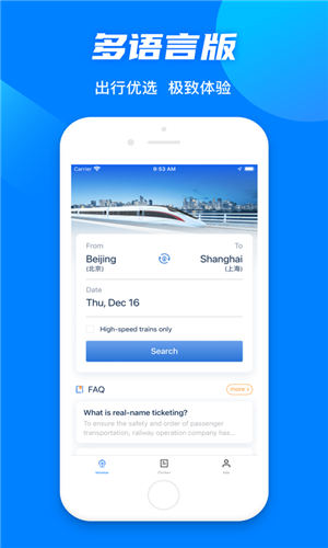 铁路12306app最新版本2022是铁路局旗下官方购票平台,可以为您带来更加及时、精准的行程消息,并为您实时监控车票余量。并且软件可以为您再有人退票时带来第一时间的消息推送,让你可以更快获取自己急需的抢手车票。在铁路12306app最新版本2022中可以同时支持多种不同方式付款,各主流银行银行卡、微信、支付宝支付统统可以支持。并且在软件中你可以随时进行车票退订、改签,让乘客们无需亲自跑到车站进行办理。这款铁路12306app最新版本2022旨在为国民搭乘各铁路工具带来方便,在生活中经常能够用到。