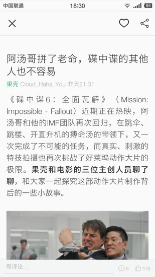 果壳精选APP这款软件还是挺有意思的一款软件,它有别于其他的新闻阅读软件,只选取比较有意思的社会趣闻,让你看到怀疑自己的三观。内容有趣好玩,平时无聊的时候看看,还是挺不错的。推荐给各位,一定不会让你失望的。