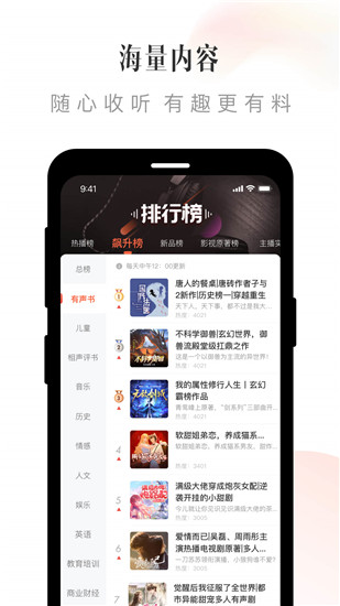 喜马拉雅听书最新版2023是一款让大家都非常喜欢,让大家每天都不会无聊,不管你对什么感兴趣,都可以在喜马拉雅听书最新版2023享受,不管是小说,还是相声,评书,音乐等各种的内容,都可以在这里全部得到,有什么需要的,平台都可以满足你们,让大家都可以在这里听自己想要听的内容,为自己解闷,解决每一天的不开心和无聊,优质多样的内容,让大家都可以找到自己喜欢的,让你们每天都可以沉浸在其中,用听来娱乐,来解闷,释放自己的双手双眼,好好的休息一下,有喜欢的都可以来下载使用起来!
