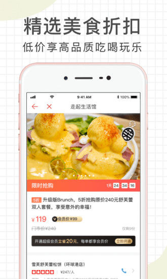 走起手机客户端是一款十分好玩的潮流生活社交软件。走起手机客户端主要服务于广大年轻男女群体,为用户提供一个潮流、便捷、全能的生活社交平台。首先,用户如果想要查看各种演出活动和展览话剧,可以在这款软件上直接在线搜索并预约观看,让你享受到丰富的文化艺术活动过程。其次,用户也可以在这款软件上查看搜索自己附件周边的潮流店铺、服装实体、密室游戏以及各种美食商店,让你吃喝玩乐一次性体验个够。并且,在这款软件里面,还有超多的生活资讯可以进行浏览,让你寻找到更多合适好玩的美食活动。如果有需要的用户朋友,欢迎前来下载使用走起手机客户端,让你不再为去哪玩、在哪吃等问题所困扰。