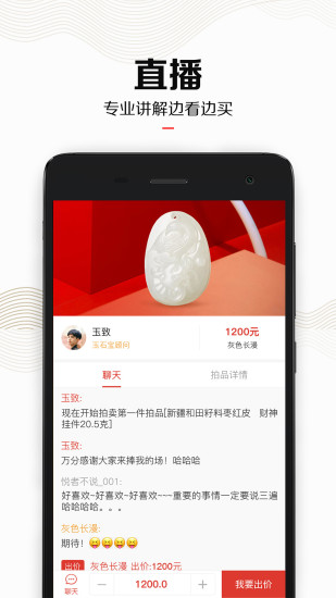 2、专家线上对玉石进行鉴定,同时直播售卖,全流程可视化,让用户买的更放心;
