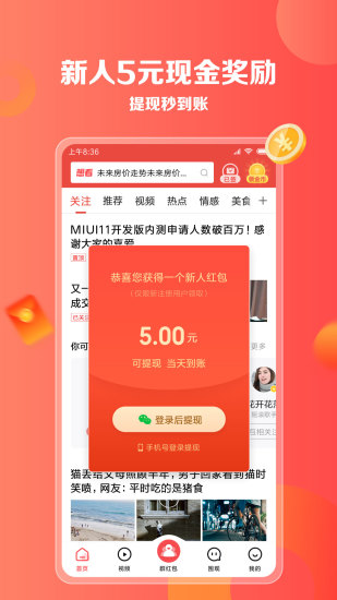 4、红包抢一抢,边看资讯边赚零用钱。