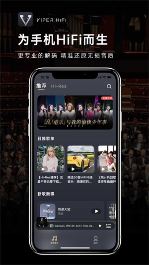 VIPER HiFiapp最新版中还有着超多的精品歌单和大牌新歌,软件还支持超全的音频格式播放,让用户可以使用软件来进行播放各种的音乐。
