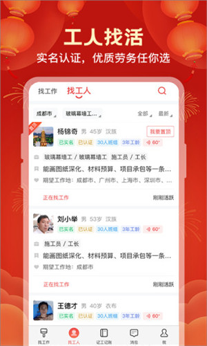 吉工家解锁版是一款工人求职的软件,专门为建筑行业提供服务的,里面可以找工作、记账、增加员工等等多种模块,在这边工人可以非常轻松找到工作,还可以享受到生活和娱乐项目,软件开放了领班寻找项目和工人记账的功能,可以能够给带来工地的工作还可以在你工作的时间中将你的收入和支出都进行详细的记录和统计,可以看到一个明确的账单。非常的方便快捷。