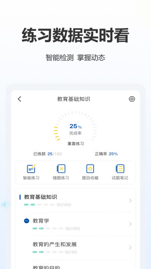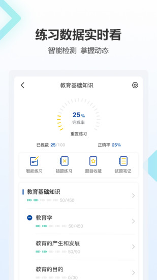 1.[智能题库]精选近5年教师资格证和教师招聘考试的历年真题和模拟题,让学生每天随时练习,轻松刷题,系统自动记录错题集,学生可以针对性练习。