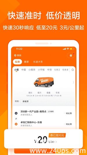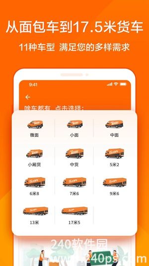 3、五大车型,大货车车型:6米8、7米6、9米6大货车开通。