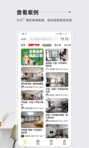 该软件能够将房屋装修的各种原创的方案都显示在专区中,这些方案也都是由从事设计多年的设计师来创作的方案。喜欢的装修风格和案例都可以先收藏。