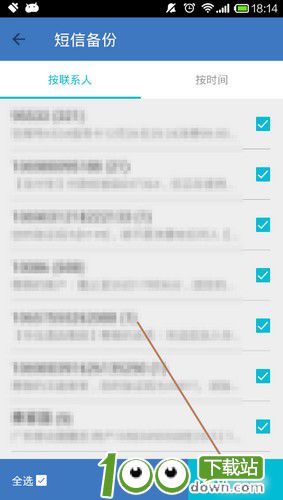 8.短信可以选择性进行备份,也可以全选。点击备份。