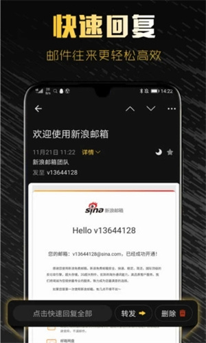新浪邮箱官方版APP是一款生活中必备的手机端办公软件,在这里系统的功能特别的齐全,拥有着特别优质的使用体验,支持多种的邮箱的登录,所有的知名的邮箱信息都是可以一站式的使用的,在这里只为给你极速的体验,智能的收取的技术,可以特别的优质的减少你流量的消耗,所有的邮件收发的速度特别的迅速。
