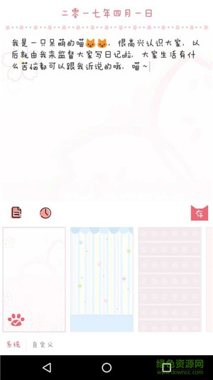 2.一下子就被这款日记的图标给吸引了,灰常可爱,应用看起来简洁舒适,没有广告简直不要太好,部分功能收费,不贵,本宫就当打赏开发者啦哈哈哈哈。登录页面真是好搞笑,输入密码时喵咪竟然会自动把眼睛捂上··我的少女心啊啊啊
