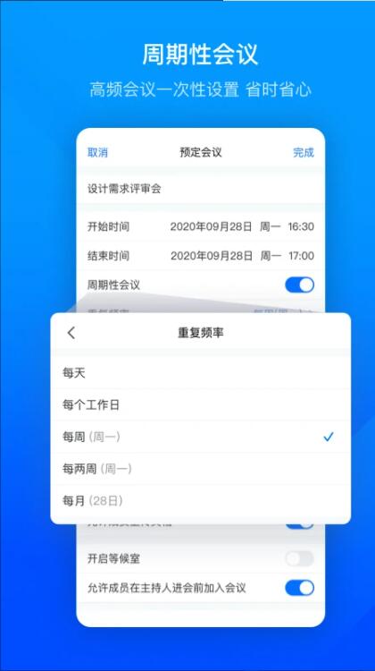 4、能一键发起会议,预约会议,还能加入会议提升会议的效率。