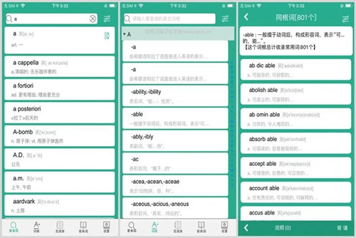 *「内置词库」:中考高考四级六级考研专四专八雅思托福gre/sat/gmat等词库;