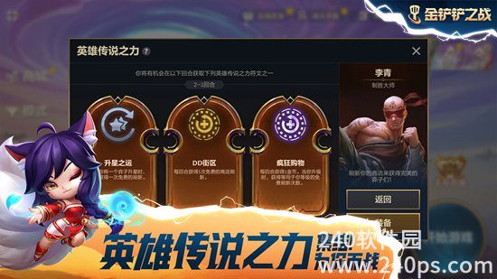 - 新特色:【英雄传说之力】让弈士们以新的方式掌控自己的命运,你将对未来的强化符文了然于胸,并能从容规划阵容;