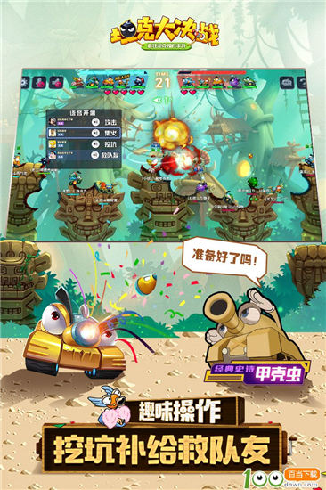 坦克大决战安卓版是一款改编《疯狂坦克》IP的抛射游戏,如果你玩过虫虫大作战,那么很快就能上手该游戏了,这款游戏的玩法和其差不多,欢迎大家前来100down下载,体验PK的乐趣。
